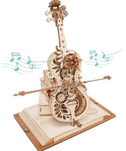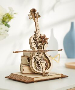 With a romantic retro style, this cello music box puzzle is mainly a combination of cello and magic book. The hollow structure of the body shows the internal gear set, six-petal flower embellished on it, the panel is engraved with a classic European pattern, very retro aesthetic. The product is also interspersed with a large number of magic elements, such as magic books, little witches and cats, giving people a retro and mysterious visual experience. In addition, the base of the magic book shape, using the story of the “father of the cello” Pablo Casals, and the main self-playing cello echoes.